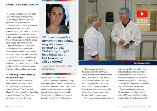 Responding to transparency and globalisation As companies are compelled to work towards a more globalised and transparent future , Agnès Houpiart-Dupré , Vice President Digital Solutions , says that digitisation is helping Mérieux NutriSciences usher in a new era in the food testing and consulting sector .