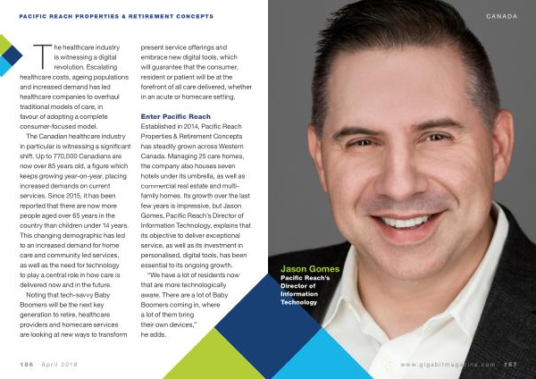 Enter Pacific Reach Established in 2014 , Pacific Reach Properties & Retirement Concepts has steadily grown across Western Canada . Managing 25 care homes , the company also houses seven hotels under its umbrella , as well as commercial real estate and multifamily homes . Its growth over the last few years is impressive , but Jason Gomes , Pacific Reach ’ s Director of Information Technology , explains that its objective to deliver exceptional service , as well as its investment in personalised , digital tools , has been essential to its ongoing growth .