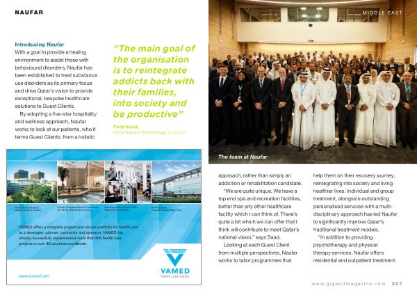 approach , rather than simply an addiction or rehabilitation candidate . “ We are quite unique . We have a top end spa and recreation facilities , better than any other healthcare facility which I can think of . There ’ s quite a bit which we can offer that I think will contribute to meet Qatar ’ s national vision ,” says Saad .