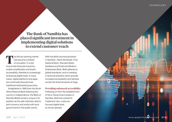The Bank of Namibia has placed significant investment in implementing digital solutions to extend customer reach