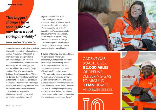 Understanding and adopting practices followed by major technology players such as Amazon and Microsoft is one way we see giving Cadent a competitive edge , says Houlton .