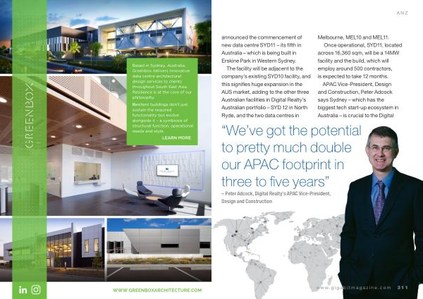 – Peter Adcock , Digital Realty ’ s APAC Vice-President , Design and Construction www . gigabitmagazine . com 311