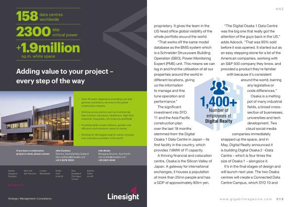 “ The Digital Osaka 1 Data Centre was the big one that really got the attention of the guys back in the US ,” adds Adcock . “ That was 95 % sold before it was opened . It started out as an easy stepping stone for a lot of the American companies , working with an S & P 500 company they know , and provided a product they ’ re familiar with because it ’ s consistent around the world , barring any legislative or code differences .”