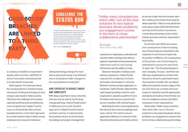 Spink agrees : “ It ’ s never just about the actual products or solutions being introduced . Pushing technology for technology ’ s sake leads to failure quickly . CIOs face the challenge of increasing operational efficiencies and delivering more consistent and stable IT performance to the business . But we have transitioned from a ‘ tech-first ’ approach to an environment today in which we see employee and consumer behaviour driving technology change . It ’ s more about using technology in an efficient way to bring about wider changes to the way business is conducted .”