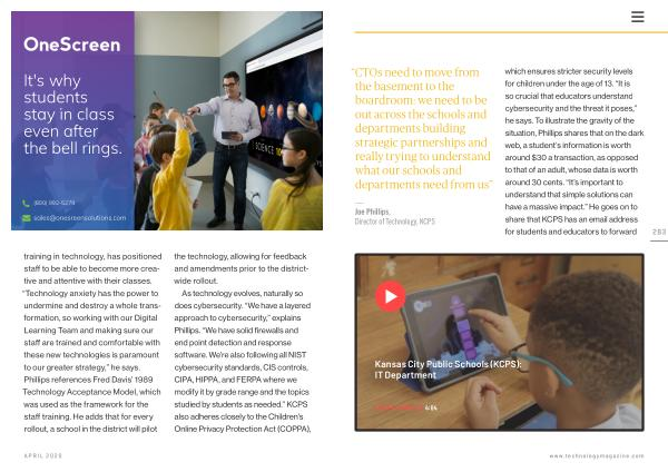 — Joe Phillips , Director of Technology , KCPS which ensures stricter security levels for children under the age of 13 . “ It is so crucial that educators understand cybersecurity and the threat it poses ,” he says . To illustrate the gravity of the situation , Phillips shares that on the dark web , a student ’ s information is worth around $ 30 a transaction , as opposed to that of an adult , whose data is worth around 30 cents . “ It ’ s important to understand that simple solutions can have a massive impact .” He goes on to share that KCPS has an email address for students and educators to forward