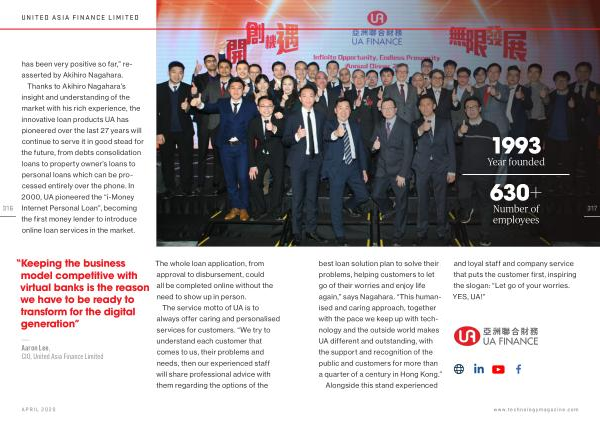 — Aaron Lee , CIO , United Asia Finance Limited