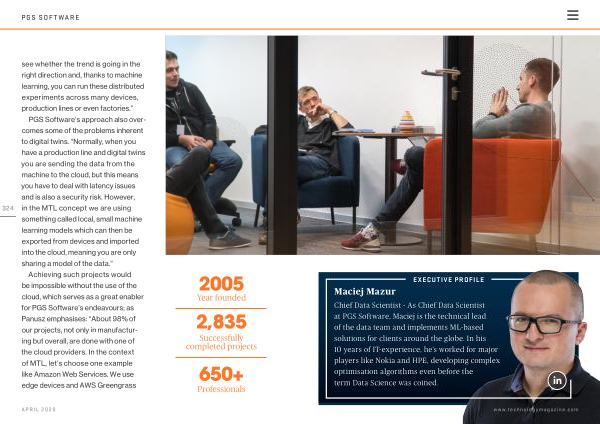 Chief Data Scientist - As Chief Data Scientist at PGS Software , Maciej is the technical lead of the data team and implements ML-based solutions for clients around the globe . In his 10 years of IT-experience , he ’ s worked for major players like Nokia and HPE , developing complex optimisation algorithms even before the term Data Science was coined . www . technologymagazine . com