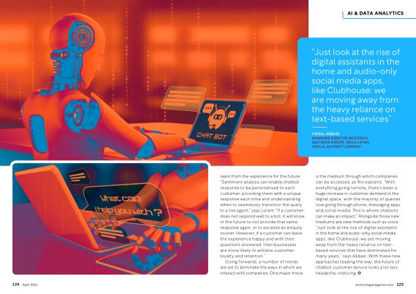 Going forwards , a number of trends are set to dominate the ways in which we interact with companies . One major move is the medium through which companies can be accessed , as Rio explains . “ With everything going remote , there ’ s been a huge increase in customer demand in the digital space , with the majority of queries now going through phone , messaging apps and social media . This is where chatbots can make an impact .” Alongside those new mediums are new methods such as voice . “ Just look at the rise of digital assistants in the home and audio-only social media apps , like Clubhouse : we are moving away from the heavy reliance on textbased services that have dominated for many years ,” says Abbasi . With these new approaches leading the way , the future of chatbot customer service looks a lot less headache-inducing .