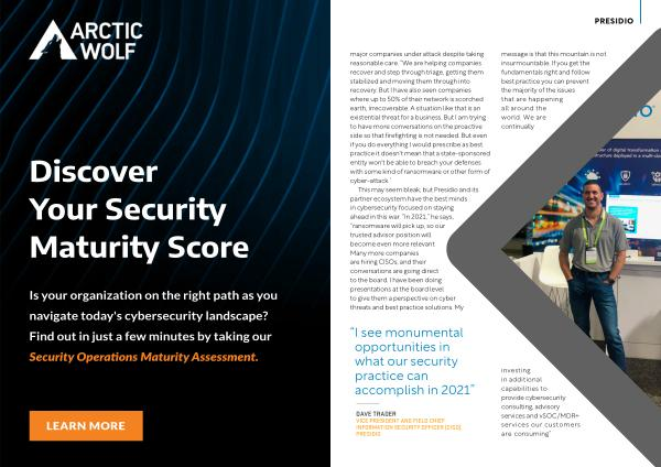 This may seem bleak , but Presidio and its partner ecosystem have the best minds in cybersecurity focused on staying ahead in this war . “ In 2021 ,” he says , “ ransomware will pick up , so our trusted advisor position will become even more relevant . Many more companies are hiring CISOs , and their conversations are going direct to the board . I have been doing presentations at the board level to give them a perspective on cyber threats and best practice solutions . My message is that this mountain is not insurmountable . If you get the fundamentals right and follow best practice you can prevent the majority of the issues that are happening all around the world . We are continually