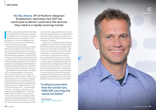 German multinational software company SAP has continually proven itself to be an essential enterprise partner and always one step ahead of the curve throughout its almost 50 years in operation . To find out how it has been maintaining its trademark brand of customer-focused innovation during one of the most difficult periods in recent history , we spoke to Nis Boy Naeve , Vice President of Platform Adoption Enablement and former Chief Product Owner , SAP User Interfaces .