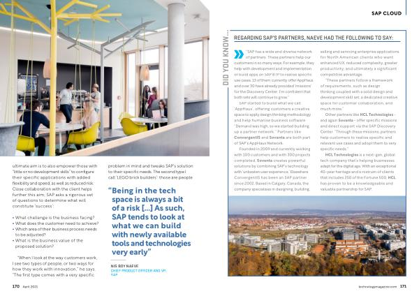 “ Being in the tech space is always a bit of a risk [...] As such , SAP tends to look at what we can build with newly available tools and technologies very early ”