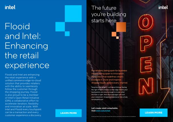 Flooid and Intel are enhancing the retail experience with a unified commerce edge-to-cloud solution that provides retailers with the ability to seamlessly follow the customer through the shopping journey . Flooid is also proud to be a member of Intel ’ s Open Retail Initiative ( ORI ); a collaborative effort to accelerate iteration , flexibility and innovation at scale . With Intel and Flooid every touchpoint can be a transaction and every customer experience a discovery .