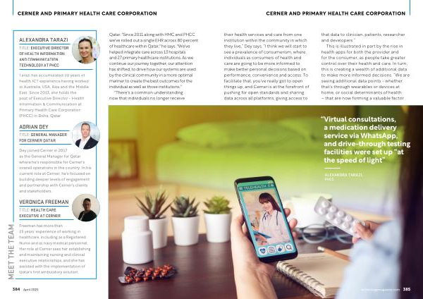 Qatar . " Since 2011 along with HMC and PHCC we ' ve rolled out a single EHR across 80 percent of healthcare within Qatar ," he says . " We ' ve helped integrate care across 13 hospitals and 27 primary healthcare institutions . As we continue our journey together , our attention has shifted , to drive how our systems are used by the clinical community in a more optimal manner to create the best outcomes for the individual as well as those institutions ."