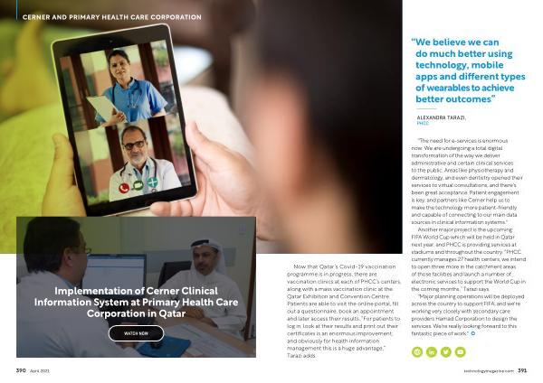 " The need for e-services is enormous now . We are undergoing a total digital transformation of the way we deliver administrative and certain clinical services to the public . Areas like physiotherapy and dermatology , and even dentistry opened their services to virtual consultations , and there ' s been great acceptance . Patient engagement is key , and partners like Cerner help us to make the technology more patient-friendly and capable of connecting to our main data sources in clinical information systems ."