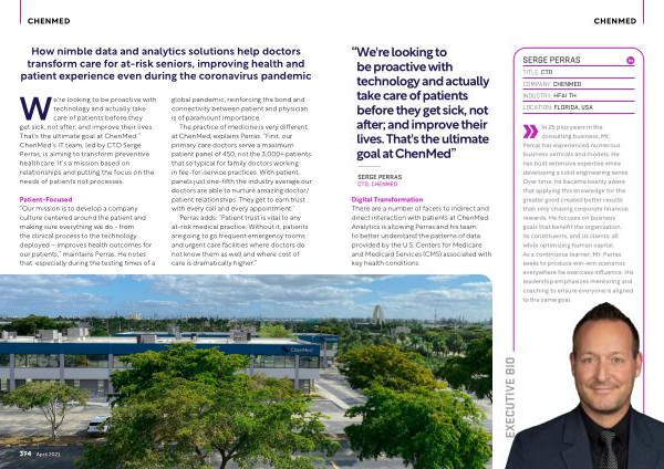 Digital Transformation There are a number of facets to indirect and direct interaction with patients at ChenMed . Analytics is allowing Perras and his team to better understand the patterns of data provided by the U . S . Centers for Medicare and Medicaid Services ( CMS ) associated with key health conditions .