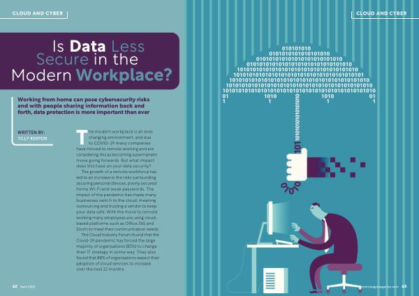 The growth of a remote workforce has led to an increase in the risks surrounding securing personal devices , poorly secured home Wi-Fi and weak passwords . The impact of the pandemic has made many businesses switch to the cloud , meaning outsourcing and trusting a vendor to keep your data safe . With the move to remote working many employees are using cloudbased platforms such as Office 365 and Zoom to meet their communication needs .