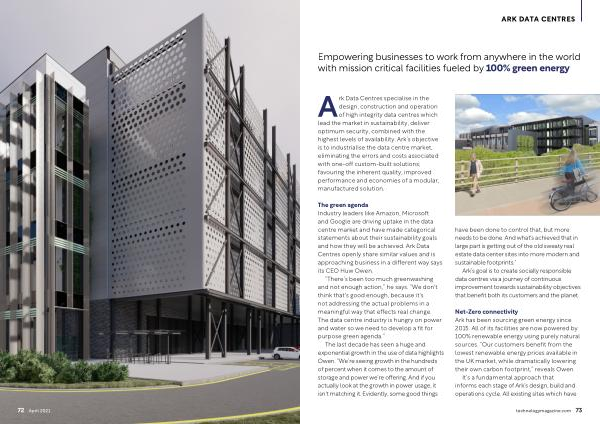 Net-Zero connectivity Ark has been sourcing green energy since 2015 . All of its facilities are now powered by 100 % renewable energy using purely natural sources . “ Our customers benefit from the lowest renewable energy prices available in the UK market , while dramatically lowering their own carbon footprint ,” reveals Owen .