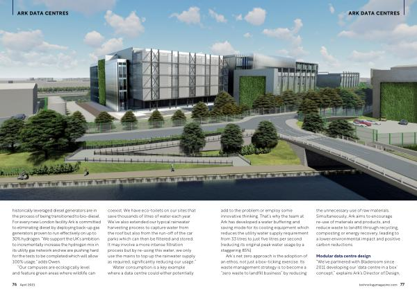 historically leveraged diesel generators are in the process of being transitioned to bio-diesel . For every new London facility Ark is committed to eliminating diesel by deploying back-up gas generators proven to run effectively on up to 30 % hydrogen . “ We support the UK ’ s ambition to incrementally increase the hydrogen mix in its utility gas network and we are pushing hard for the tests to be completed which will allow 100 % usage ,” adds Owen .