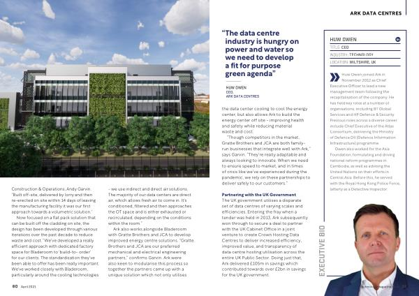“ The data centre industry is hungry on power and water so we need to develop a fit for purpose green agenda ” HUW OWEN CEO , ARK DATA CENTRES