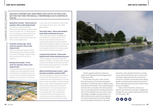 ARK DATA CENTRES CEO , HUW OWEN LISTS SIX OF ITS FACILITIES SETTING THE TONE FOR SOCIALLY RESPONSIBLE DATA CENTRES IN THE UK :