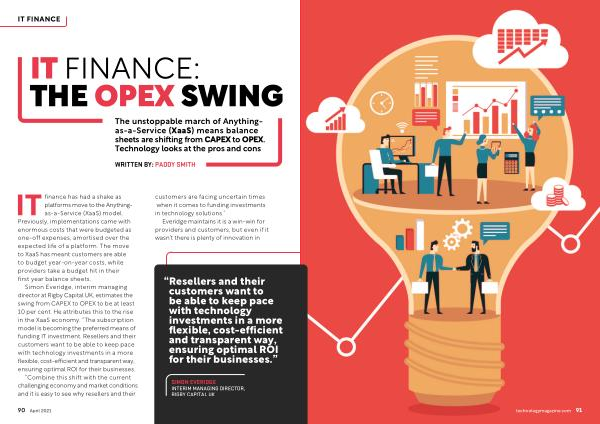 Simon Everidge , interim managing director at Rigby Capital UK , estimates the swing from CAPEX to OPEX to be at least 10 per cent . He attributes this to the rise in the XaaS economy . “ The subscription model is becoming the preferred means of funding IT investment . Resellers and their customers want to be able to keep pace with technology investments in a more flexible , cost-efficient and transparent way , ensuring optimal ROI for their businesses .