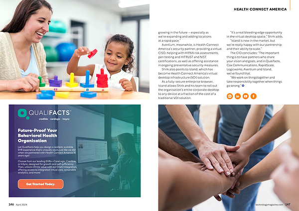 Avertium , meanwhile , is Health Connect America ’ s security partner , providing a virtual CISO , helping with HIPAA risk assessments , pen testing and HITRUST and NIST certifications , as well as offering assistance in ongoing preventative security measures . Shirk also points to Island , which has become Health Connect America ’ s virtual desktop infrastructure ( VDI ) solution .