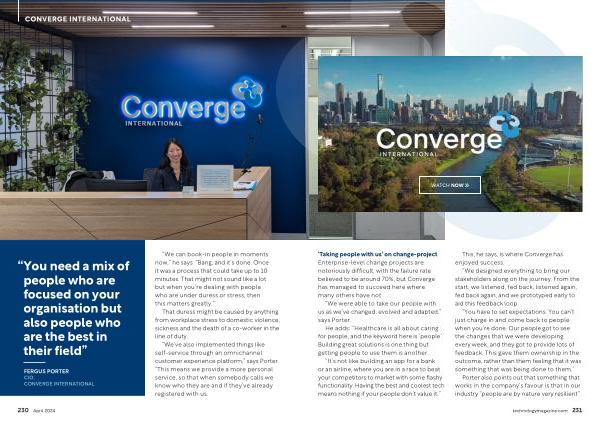 ‘ Taking people with us ’ on change-project Enterprise-level change projects are notoriously difficult , with the failure rate believed to be around 70 %, but Converge has managed to succeed here where many others have not .