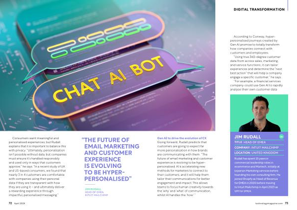 Gen AI to drive the evolution of CX Going forward , Rudall predicts that customers are going to expect far more personalisation in how brands are communicating with them . “ The future of email marketing and customer experience is evolving to be hyperpersonalised . AI is accelerating new methods for marketers to connect to their customers , and it will help them tailor their communications for better engagement and impact . This allows teams to focus human creativity towards the ‘ why ’ and ‘ what ’ of communication , whilst AI handles the ‘ how ’.”