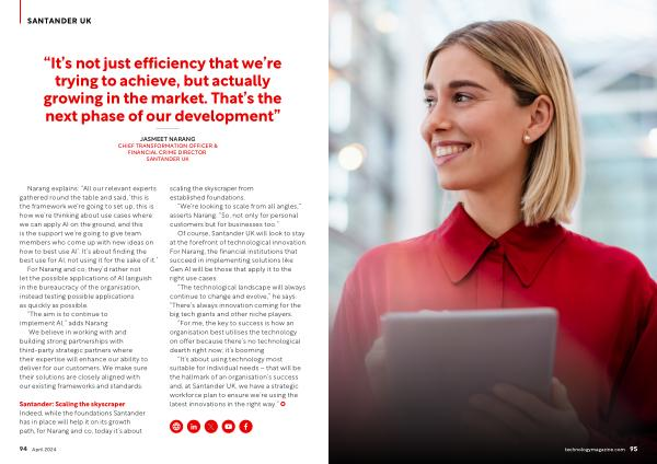 “ It ’ s about using technology most suitable for individual needs – that will be the hallmark of an organisation ’ s success and , at Santander UK , we have a strategic workforce plan to ensure we ’ re using the latest innovations in the right way .” 94 April 2024