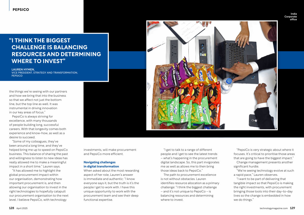 “ It has allowed me to highlight the global procurement impact within our organisation, demonstrating how important procurement is, and then allowing our organisation to invest in the right technologies to hopefully catapult our procurement organisation to the next level. I believe PepsiCo, with technology investments, will make procurement and PepsiCo more efficient.