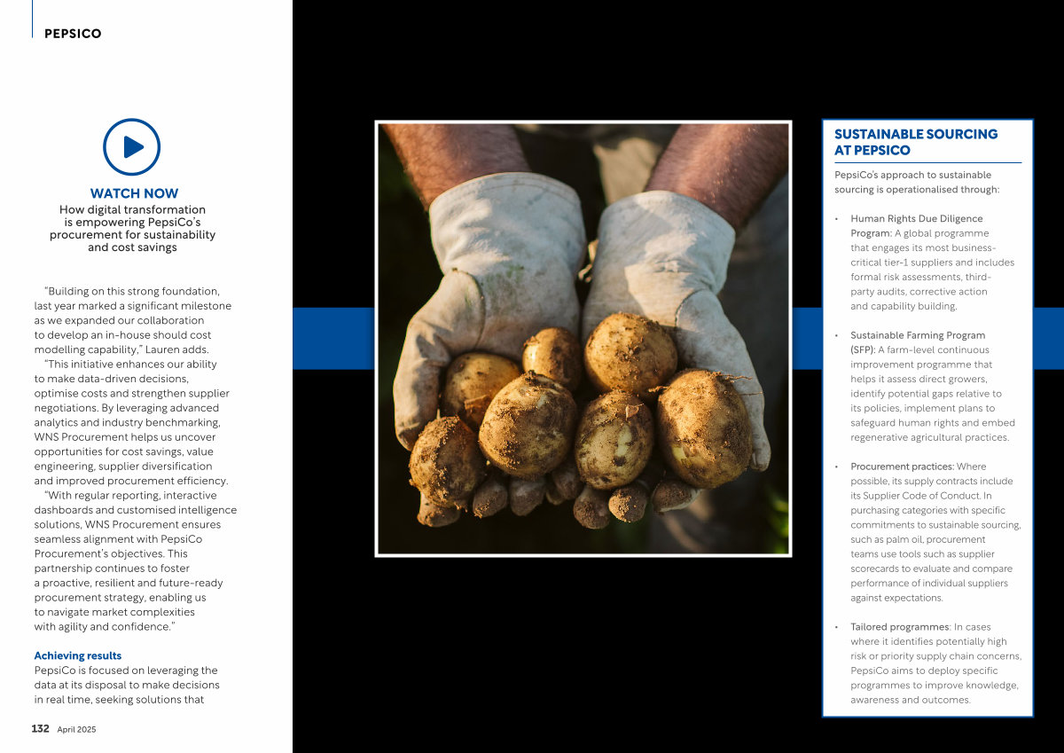 • Tailored programmes: In cases where it identifies potentially high risk or priority supply chain concerns, PepsiCo aims to deploy specific programmes to improve knowledge, awareness and outcomes.