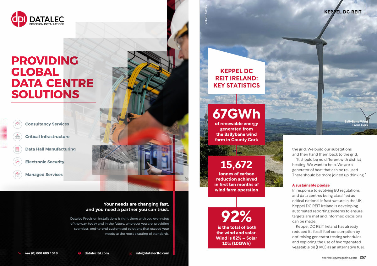 A sustainable pledge In response to evolving EU regulations and data centres being classified as critical national infrastructure in the UK, Keppel DC REIT Ireland is developing automated reporting systems to ensure targets are met and informed decisions can be made.