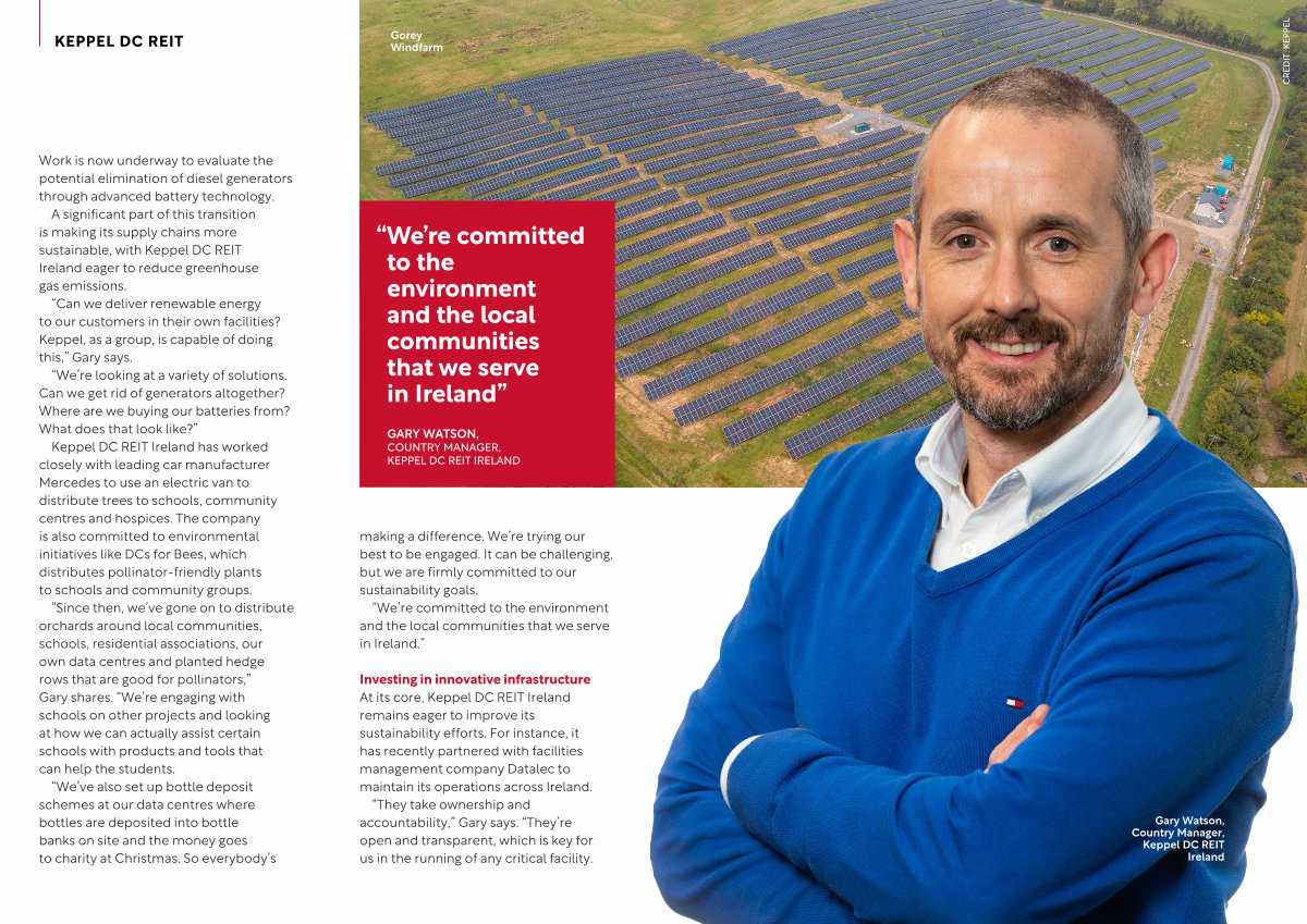 Investing in innovative infrastructure At its core, Keppel DC REIT Ireland remains eager to improve its sustainability efforts. For instance, it has recently partnered with facilities management company Datalec to maintain its operations across Ireland.