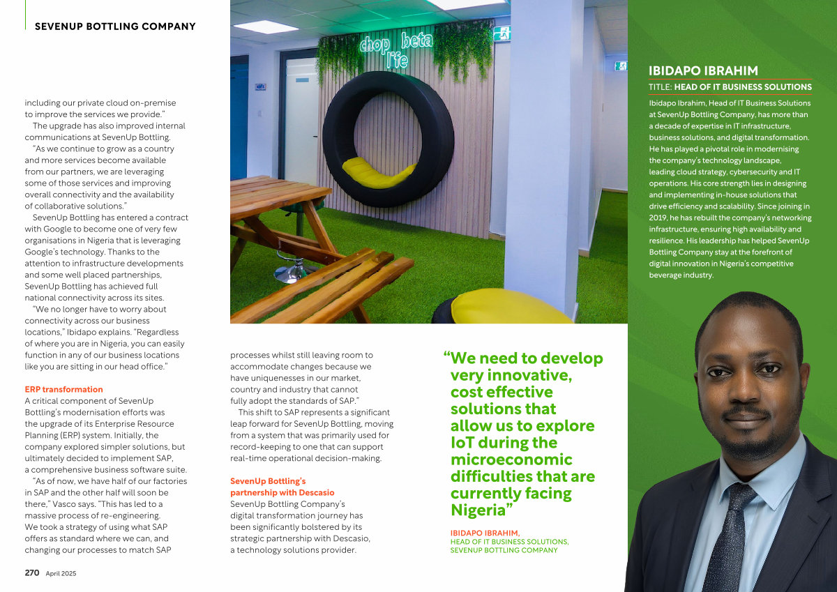 Ibidapo Ibrahim, Head of IT Business Solutions at SevenUp Bottling Company, has more than a decade of expertise in IT infrastructure, business solutions, and digital transformation. He has played a pivotal role in modernising the company’ s technology landscape, leading cloud strategy, cybersecurity and IT operations. His core strength lies in designing and implementing in-house solutions that drive efficiency and scalability. Since joining in 2019, he has rebuilt the company’ s networking infrastructure, ensuring high availability and resilience. His leadership has helped SevenUp Bottling Company stay at the forefront of digital innovation in Nigeria’ s competitive beverage industry.