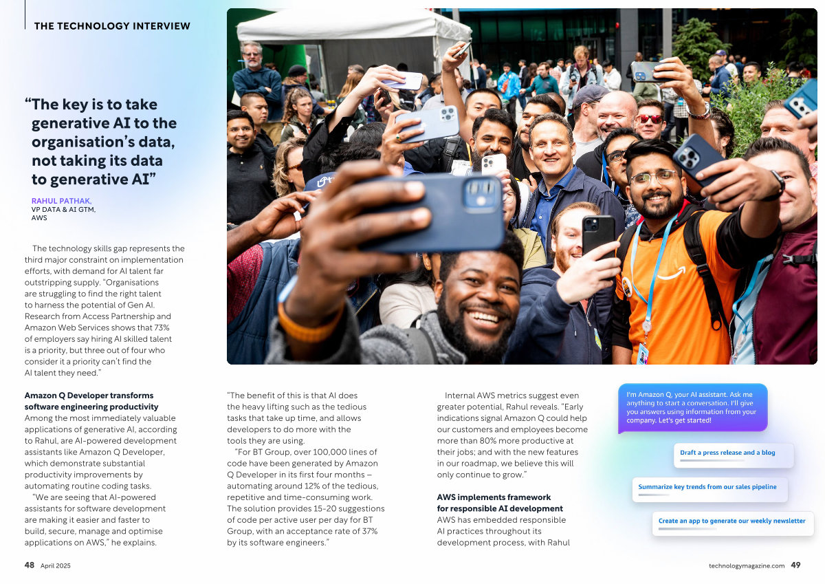 “ We are seeing that AI-powered assistants for software development are making it easier and faster to build, secure, manage and optimise applications on AWS,” he explains.