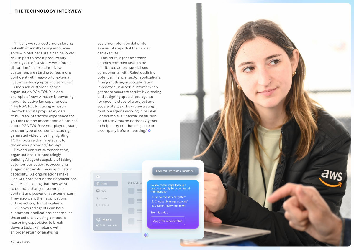 This multi-agent approach enables complex tasks to be distributed across specialised components, with Rahul outlining potential financial sector applications.“ Using multi-agent collaboration in Amazon Bedrock, customers can get more accurate results by creating and assigning specialised agents for specific steps of a project and accelerate tasks by orchestrating multiple agents working in parallel. For example, a financial institution could use Amazon Bedrock Agents to help carry out due diligence on a company before investing.”