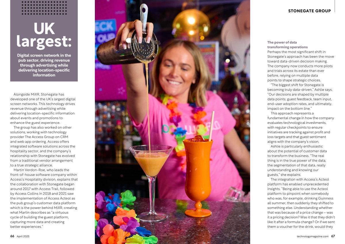 The power of data transforming operations Perhaps the most significant shift in Stonegate’ s approach has been the move toward data-driven decision making. The company now conducts more pilots and trials across its estate than ever before, relying on multiple data points to shape strategic choices.