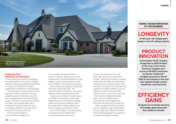 Redefining value: Resilience, cost and speed In the modern procurement landscape, the traditional focus on cost is no longer sufficient. Dean has redrafted the definition of“ impact” at TAMKO to include a balanced trio of resilience, cost and speed.