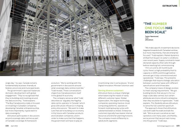 The approach shows that eStruxture can both walk the walk and talk the talk.“ We’ ve proven ourselves as real operators over many years, and frankly, we’ ve proven that we put real money into the ground,” Todd says.
