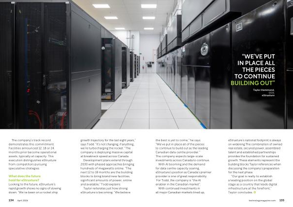 With AI booming and the demand for data centre capacity soaring, eStruxture’ s position as Canada’ s premier provider is one of great responsibility. For Todd, the company is“ the AI enabler in the Canadian market”.