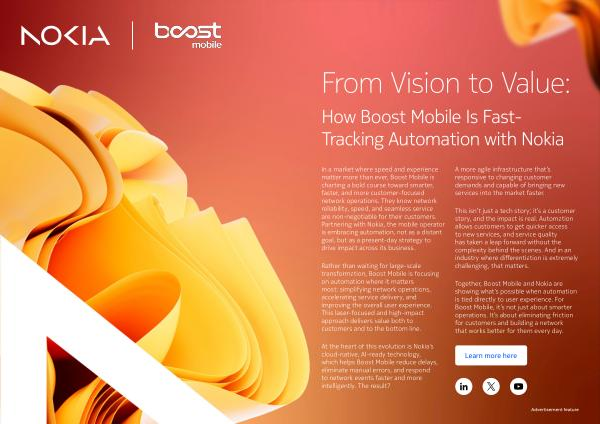 Together, Boost Mobile and Nokia are showing what’ s possible when automation is tied directly to user experience. For Boost Mobile, it’ s not just about smarter operations. It’ s about eliminating friction for customers and building a network that works better for them every day.