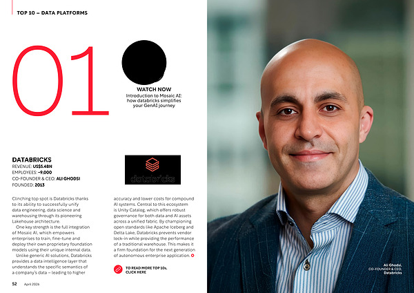 Clinching top spot is Databricks thanks to its ability to successfully unify data engineering, data science and warehousing through its pioneering Lakehouse architecture.