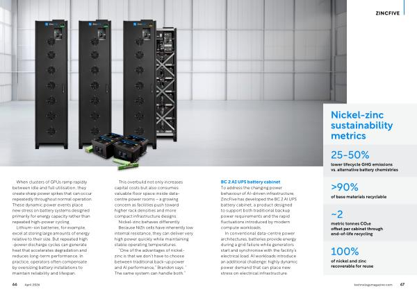 “ One of the advantages of nickelzinc is that we don’ t have to choose between traditional back-up power and AI performance,” Brandon says.“ The same system can handle both.”