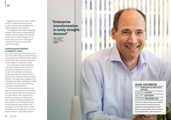 Alan drives data initiatives and digital transformation at Alteryx and has experience leading global analytics teams, fostering data-driven cultures across engineering, sales and more.