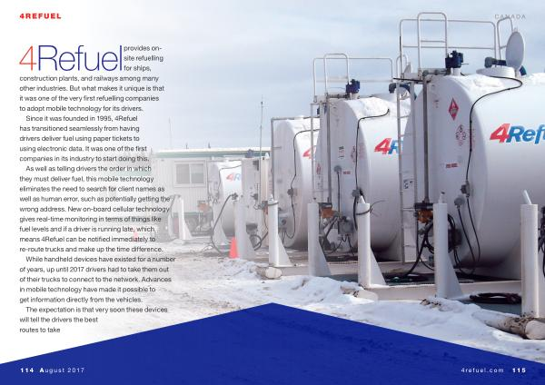 4Refuel provides onsite refuelling for ships , construction plants , and railways among many other industries . But what makes it unique is that it was one of the very first refuelling companies to adopt mobile technology for its drivers .