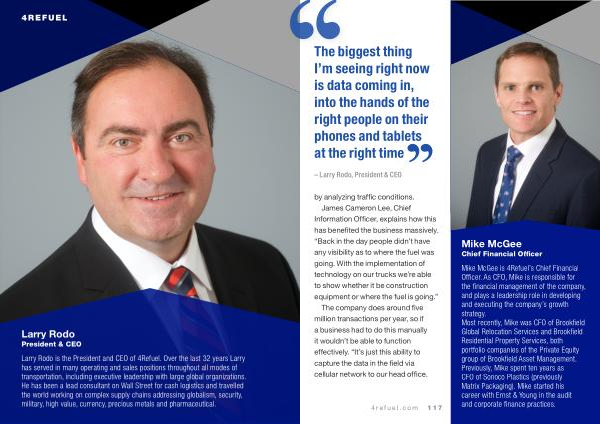 Mike McGee is 4Refuel ’ s Chief Financial Officer . As CFO , Mike is responsible for the financial management of the company , and plays a leadership role in developing and executing the company ’ s growth strategy . Most recently , Mike was CFO of Brookfield Global Relocation Services and Brookfield Residential Property Services , both portfolio companies of the Private Equity group of Brookfield Asset Management . Previously , Mike spent ten years as CFO of Sonoco Plastics ( previously Matrix Packaging ). Mike started his career with Ernst & Young in the audit and corporate finance practices .