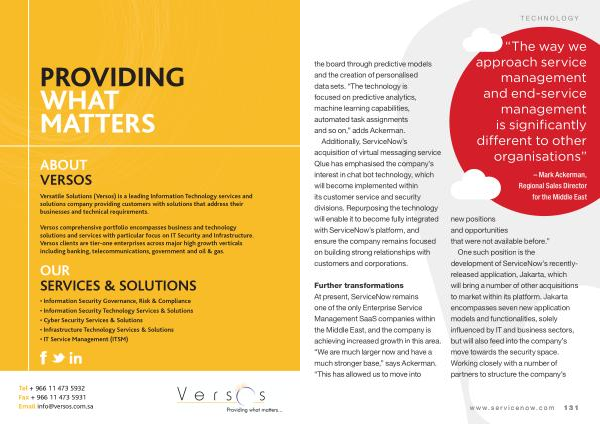 Versos comprehensive portfolio encompasses business and technology solutions and services with particular focus on IT Security and Infrastructure . Versos clients are tier-one enterprises across major high growth verticals including banking , telecommunications , government and oil & gas .