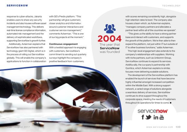 The development of the ServiceNow platform has enabled the launch of services that have become highly influential amongst increased competition within the Middle East . With a strong support network , a varied range of solutions alongside a seamless delivery of services , ServiceNow continues to drive support throughout the corporate space , meeting the needs of customers throughout its operations for times to come .
