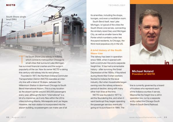 The South Shore Line railway in Indiana , which connects metropolitan Chicago to small cities that surround Lake Michigan , has survived financial crashes and the surge in popularity of the car . Now its owner NICTD is taking this century-old railway into its next phase .