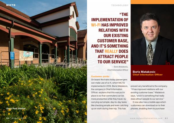Customer perks On board the trains today passengers can make use of wi-fi , which NICTD implemented in 2016 . Boris Matakovic , the company ’ s Chief Information Officer , explains that this was put in place is so that commuters can be more productive while they travel , by carrying out simple , day-to-day tasks like checking emails and even catching up on work during their trip . This has